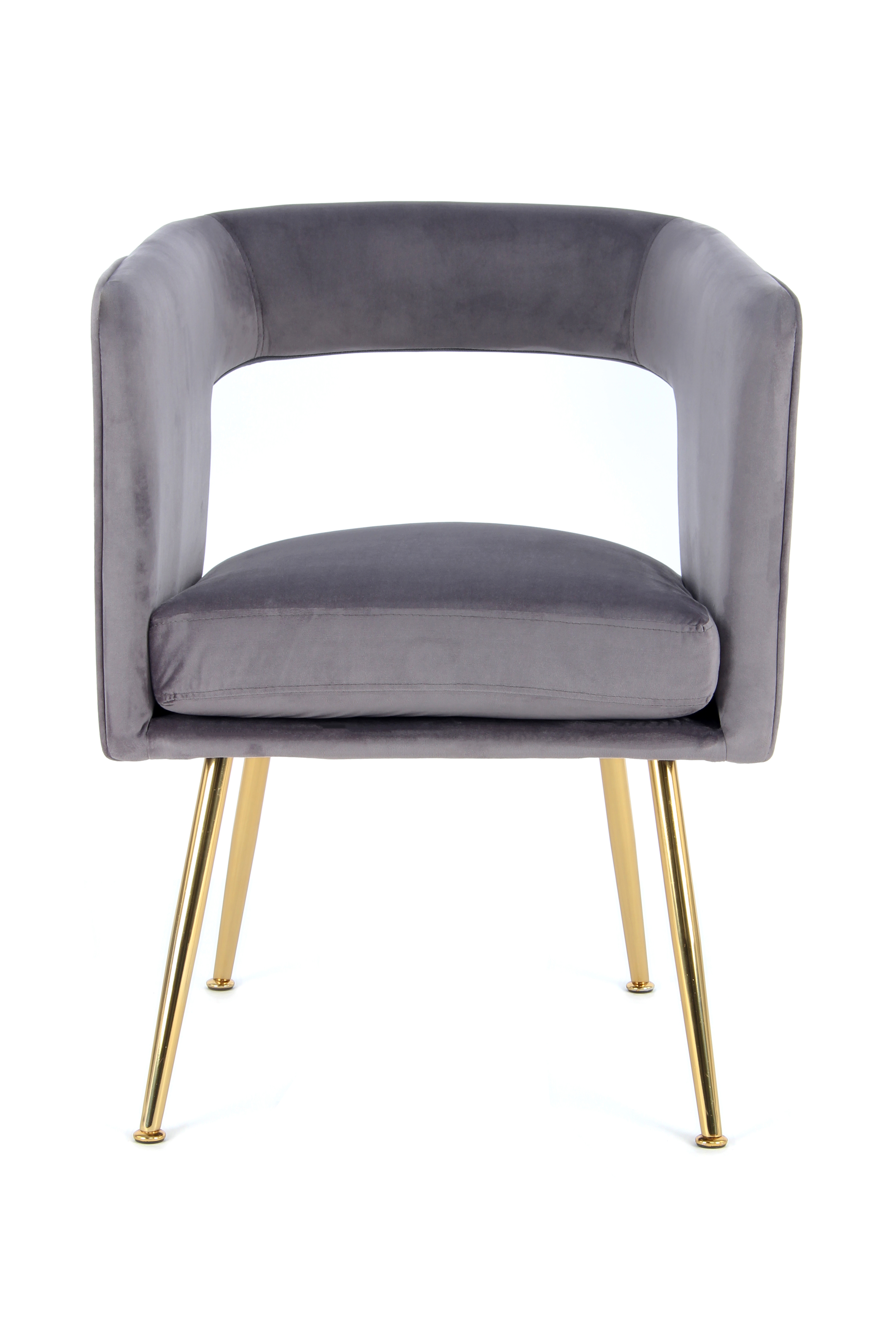 Dieses Stuhl-Set bietet Komfort und Glamour in Kombination. Der samtweiche Stoffbezug der Stühle macht das Set zum Blickfang in jedem Raum. Die edle Haptik sorgt für eine luxuriöse Atmosphäre und bildet eine Harmonie zu der rundlichen Stuhlform im Retro-Stil. Durch eine Öffnung in der Rückenlehne wird der Retro-Charakter unterstrichen und das Gesamtbild des Stuhls aufgelockert. Metallbeine integrieren sich farblich gut in die Optik und geben dem Stuhl stabilen Halt. Durch die zeitgemäße Farbe kann der Stuhl sowohl in modischen, als auch in schlichten, dezenten Einrichtungen als Sitzgelegenheit genutzt werden. Mit einem attraktiven Teppich oder weiteren Möbeln im gleichen Stil können Sie Ihren Einrichtungsstil verdeutlichen und Ihren persönlichen Wohntraum verwirklichen. Das Set besteht aus zwei gleichen Stühlen, die paarweise oder in Kombination mit weiteren Sets gestellt werden können. Die Stühle können in ihrer tatsächlichen Farbgebung von den Bildern abweichen. Durch unterschiedlichen Lichteinfall und verschiedene Streichrichtungen des Stoffbezuges können unterschiedliche Farbnuancen entstehen.