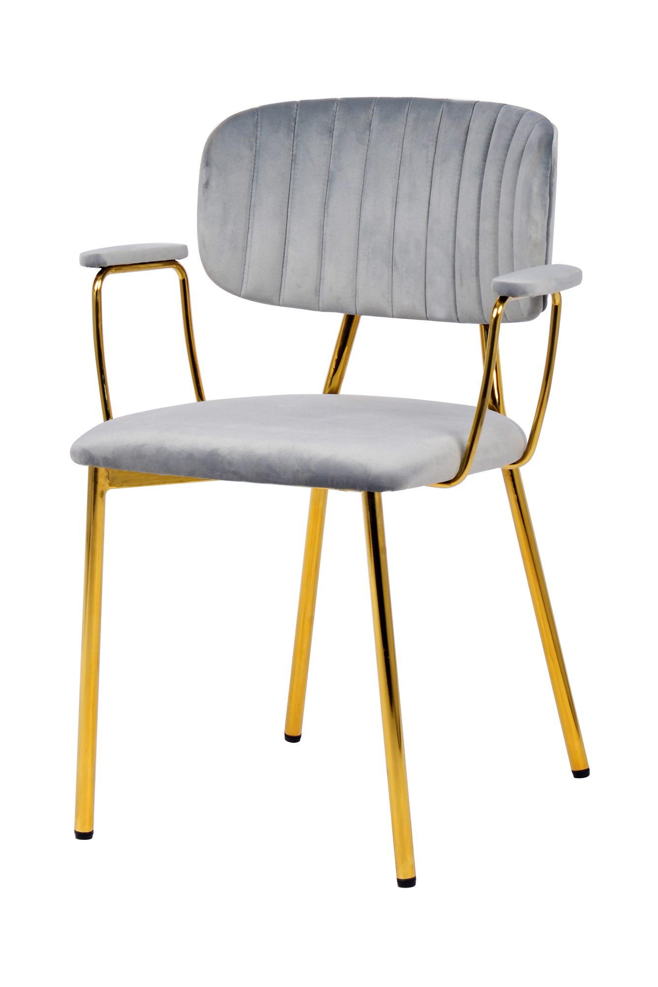 Diese Stühle sind echte Hingucker und werten jedes Esszimmer auf: einfiligranes Edelstahl-Gestell wird ergänzt durch eine gepolsterte Sitzfläche und Rückenlehne. Highlight sind die an der Sitzfläche angebrachten Armlehnen, die für den besonderen Komfort sorgen, sowie die Ziernähte auf der Rückenlehne. Die Pastellfarben der hochwertigen Samtbezüge lassen sich wunderbar miteinander oder mit anderen Möbelstücken der Kian-Reihe kombinieren. - Qualitäts-Samtbezug - Gestell aus 100% Eisen - gemütliche Armlehnen - unaufdringliche Farbauswahl