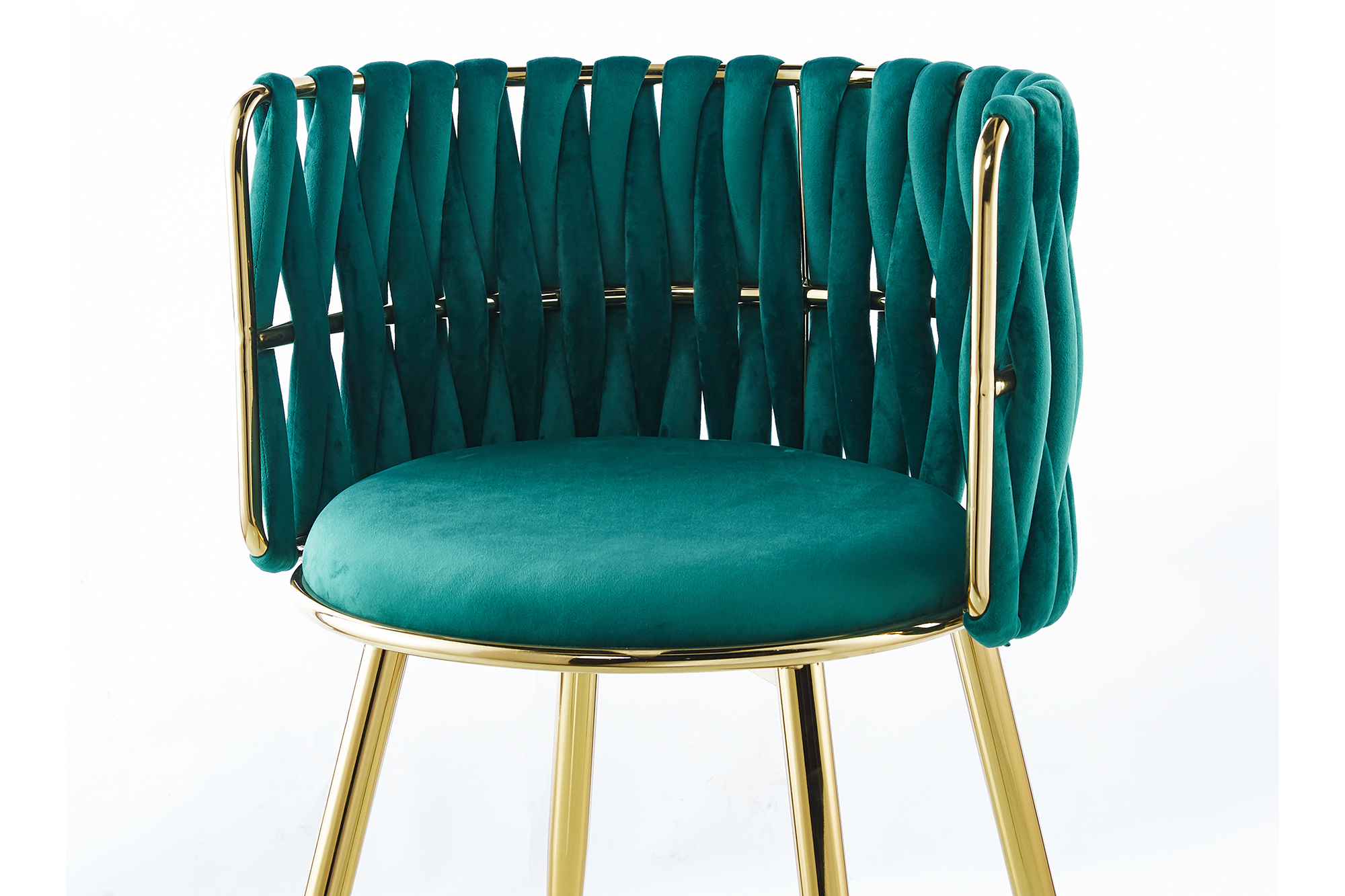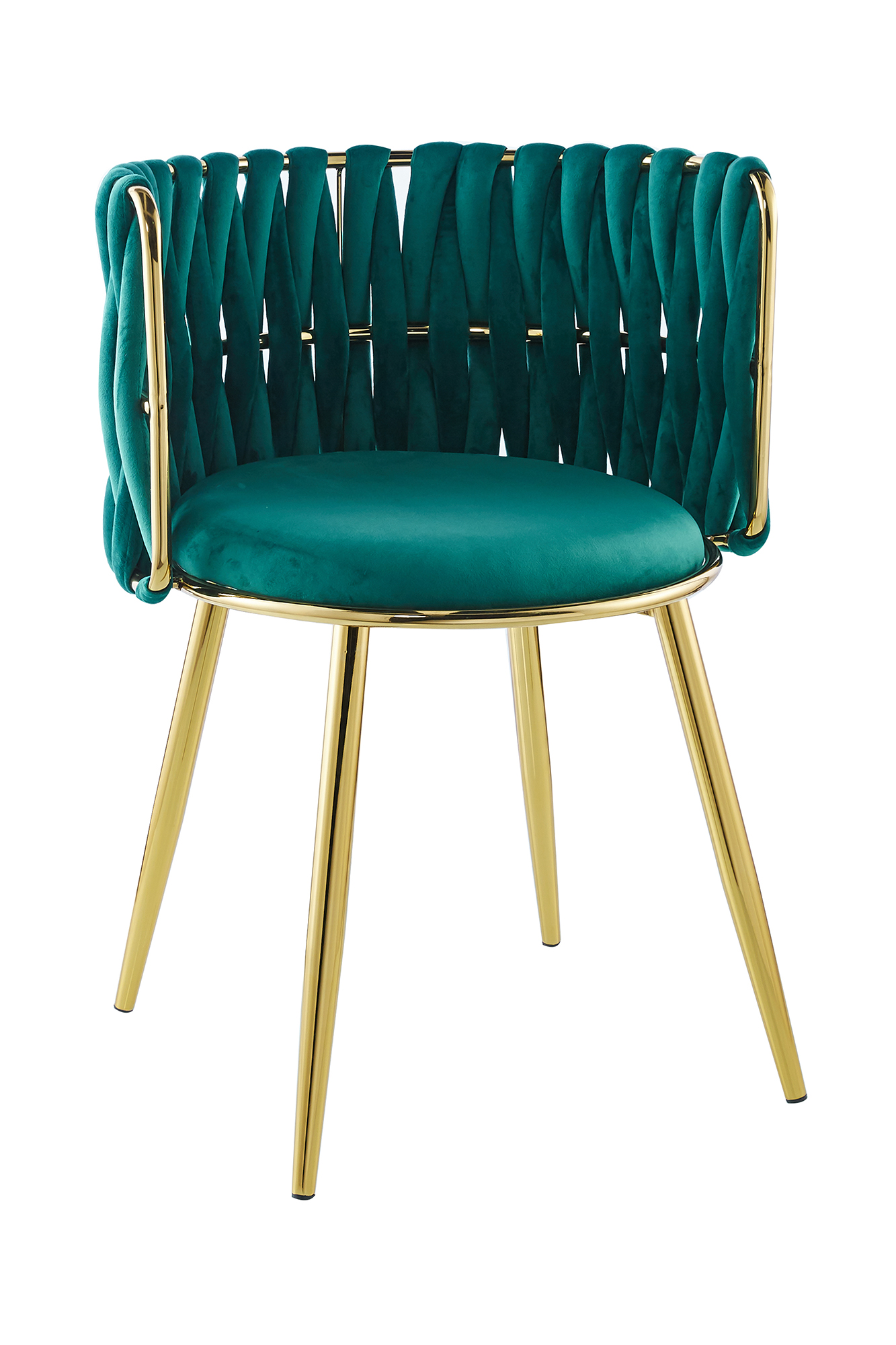 | Besonderheiten: | ausgefallenes Rückendesign in Flechtoptik, hochwertiger Samtbezug, goldfarbene Metallbeine |