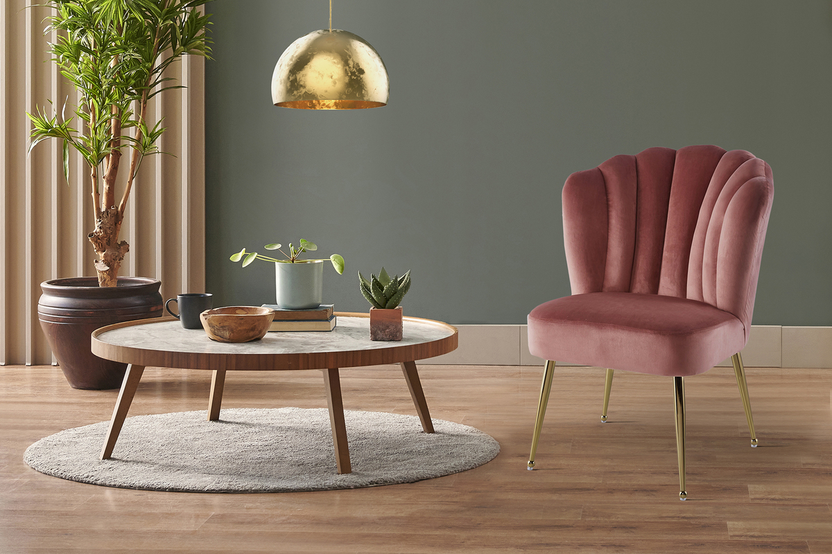 Mit dem Stuhl Pippa kombinieren Sie Glamour und den attraktiven Retro-Stil miteinander. Das einfarbige Design des besonders gemütlichen Stuhls ist unaufdringlich und zeitlos. Durch attraktive Ziernähte an der Rückenlehne wird das Gesamtbild aufgepeppt und dem Stuhl sein stilvoller Retro-Charakter verliehen. Vervollständigt wird der Stuhl durch die eleganten Metallbeine. Die weiche Polsterung und der samtweiche Bezug sorgen für einen angenehmen Sitzkomfort für Sie, Ihre Familie und Freunde.
