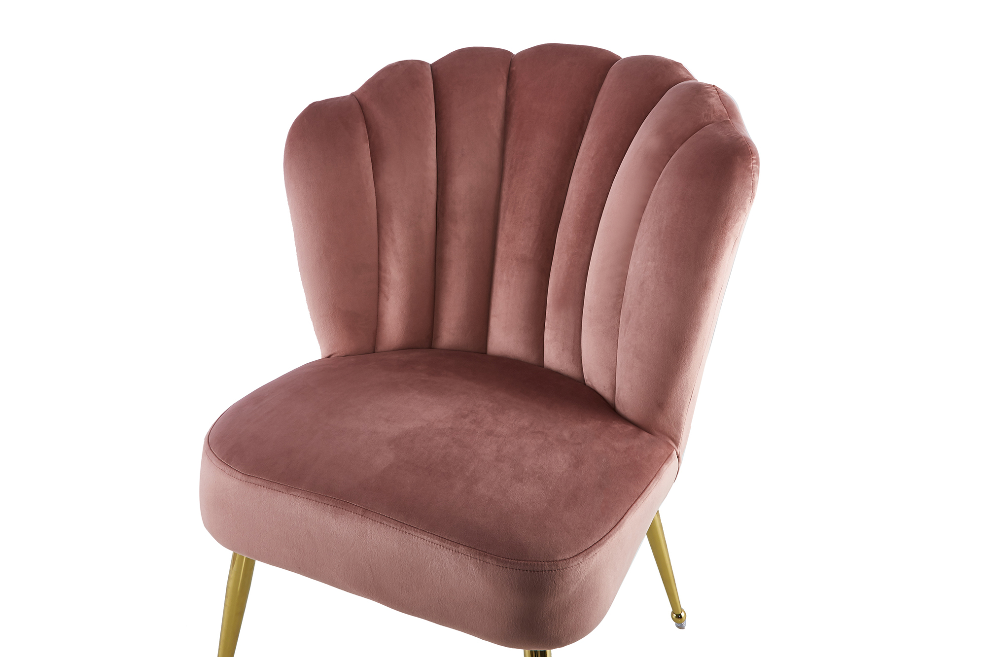 | Besonderheiten: | Samt-Polsterstuhl, goldfarbene Metallbeine, Rückenlehne in Muschel-Design |