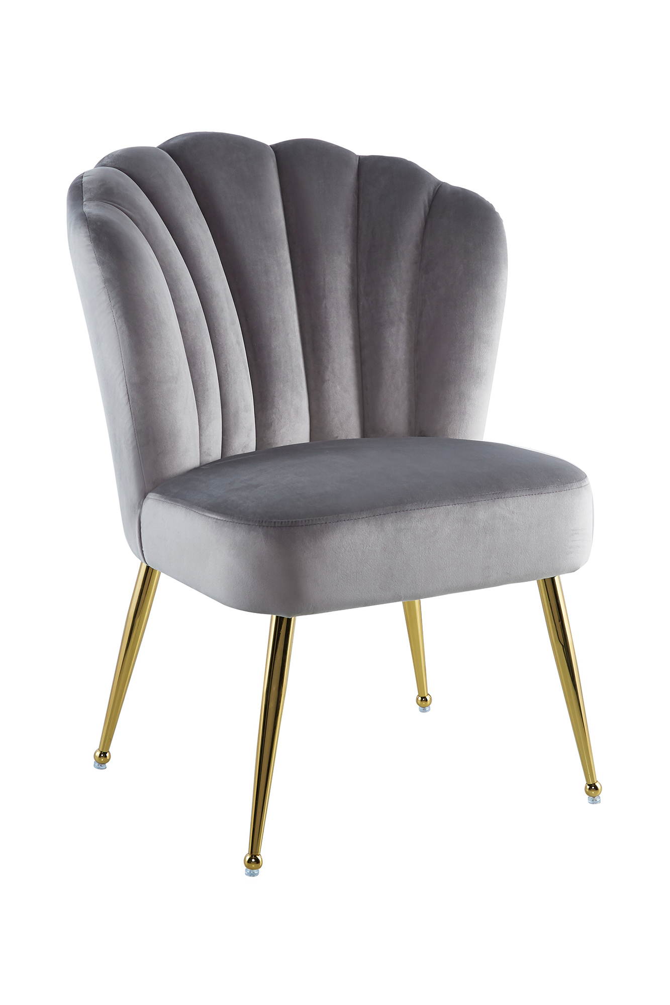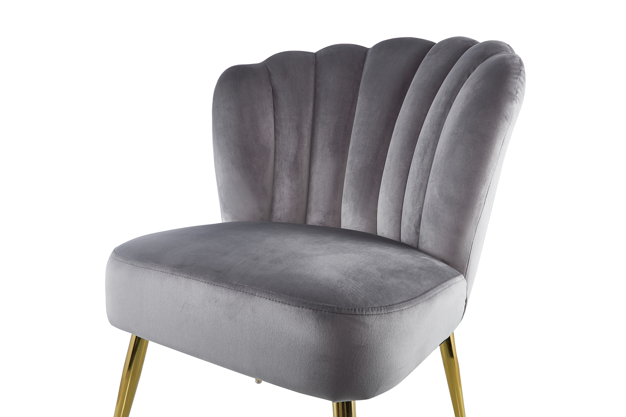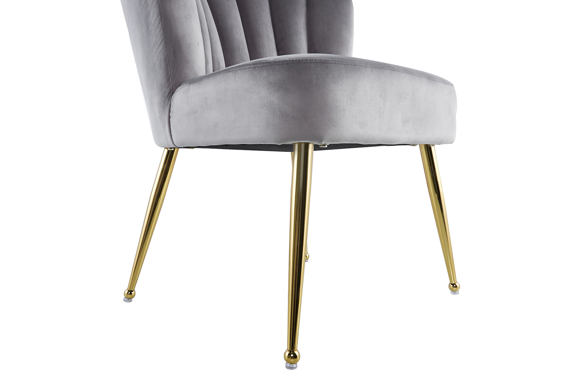 | Besonderheiten: | Samt-Polsterstuhl, goldfarbene Metallbeine, Rückenlehne in Muschel-Design |