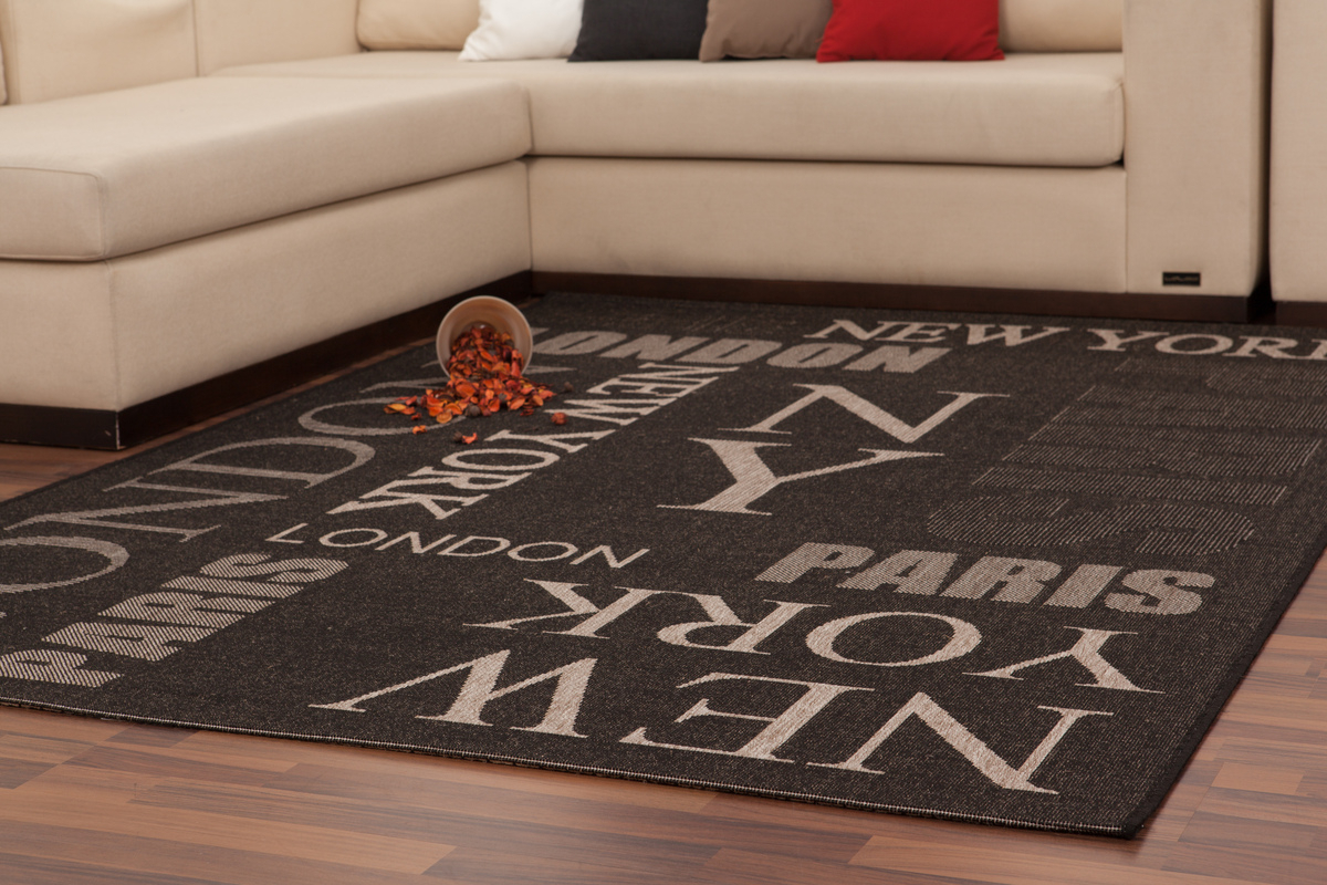Der Flachflorteppich in Sisal-Optik ist ein absoluter Trendsetter und setzt moderne Akzente in jeden Wohnbereich. Das klare Design und der natürliche Charakter zeugen von einem ganz eigenen Charme. Der graphitfarbene Teppich mit den Hauptstadtnamen New York, Paris und Londin in harmonisch abgestimmten Grautönen lässt sich problemlos in moderne, klassische oder rustikale Wohnstile integrieren. Dabei ist die Raumgröße unerheblich, denn der schlichte Teppich ist in verschiedenen Größen erhältlich.