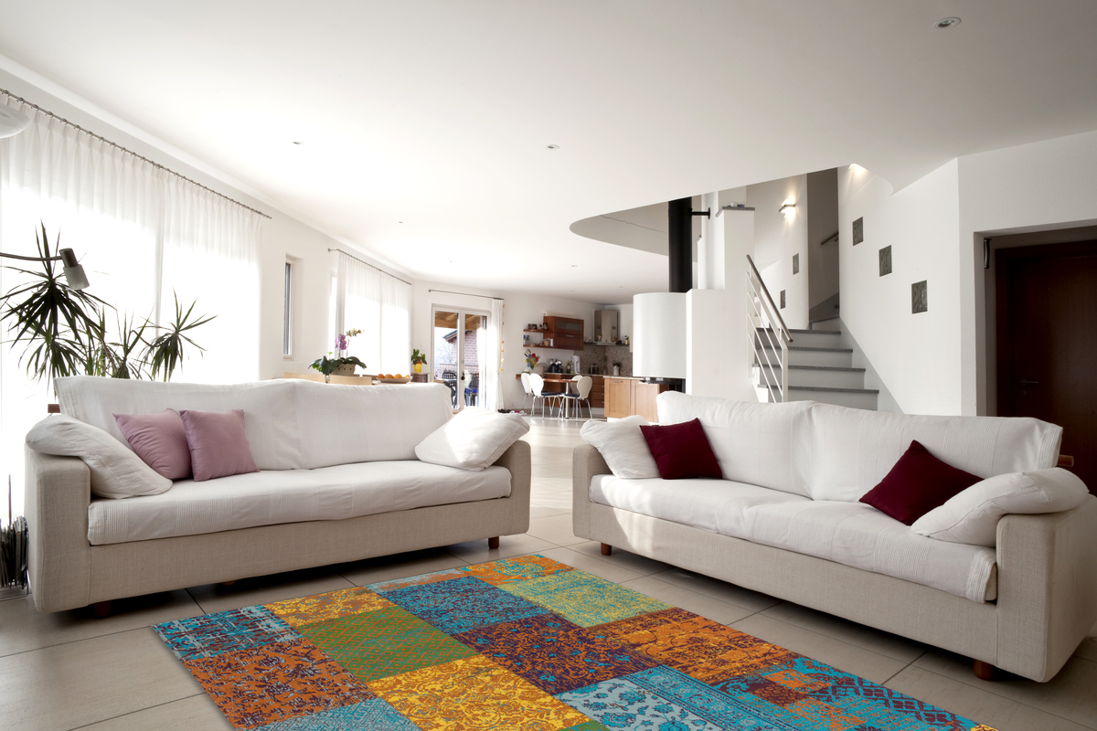 Den perfekten Laufkomfort bietet dieser Vintage-Teppich mit seinem trendigen Patchwork-Look. Die leicht verwaschenen Elemente in wunderbar kontrastierenden bunten Farben sind das Markenzeichen des Vintage-Teppichs. Das hochwertige Material und die ausgezeichnete Verarbeitung sorgen für das unnachahmliche Wohngefühl, das der Flachwebteppich vermittelt. Schön hierzu lassen sich auch die anderen Teppiche und Kissen der Reihe kombinieren. Das Material zeichnet sich durch hohe Strapazierfähigkeit, leichte Pflege und langanhaltende Farbintensität aus. Alle Ansprüche des modernen Wohnens sind in dem attraktiven Teppich mit Patchwork-Optik vereint. Einmal positioniert liegt er perfekt und sicher und vermittelt ein Maximum an Komfort. Jeder Teppich ist als Ergebnis professioneller Handarbeit ein einzigartiges Unikat.