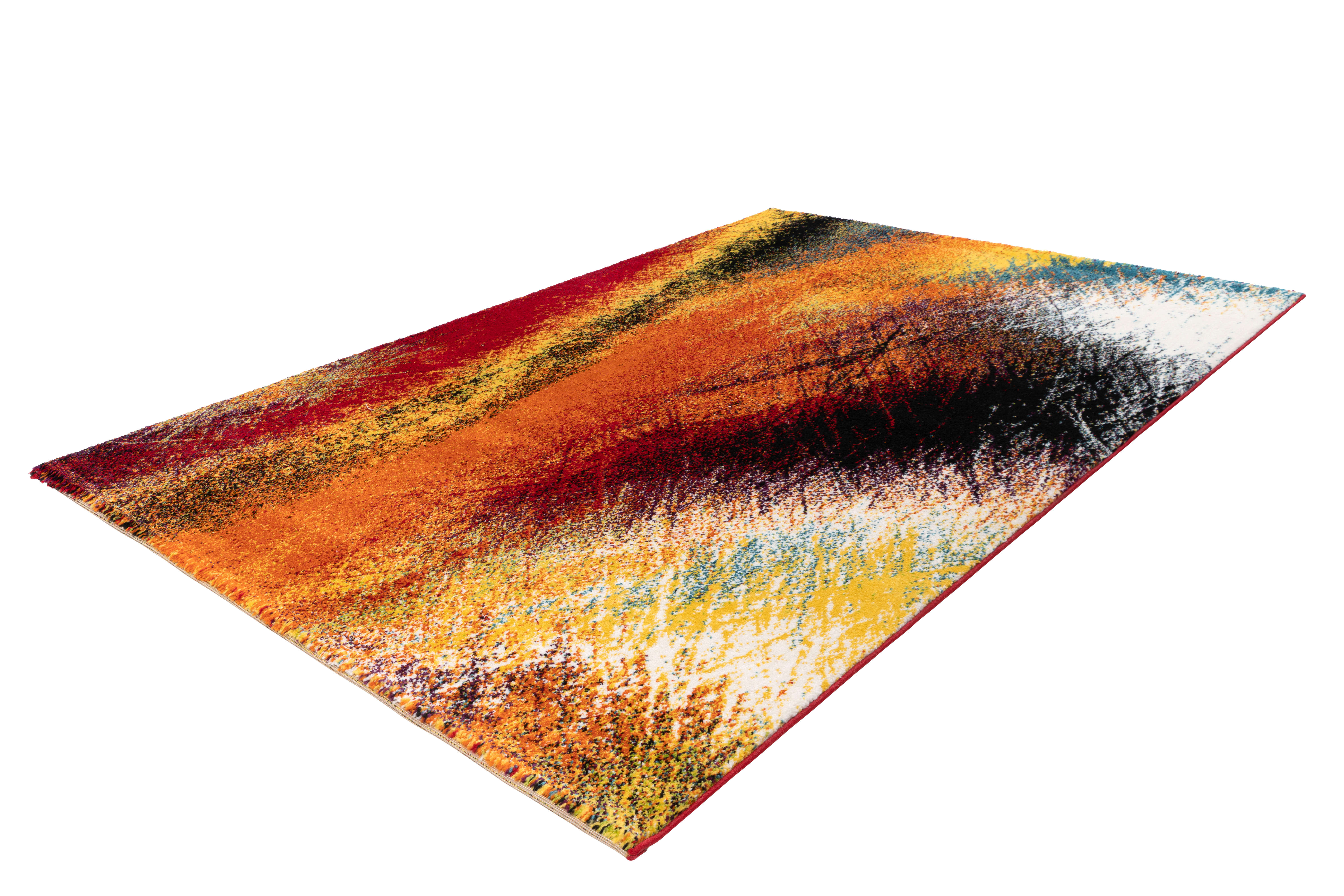 Ein kunstvolles Teppichwunder, das auf den Boden gehört, erschaffen durch die Hand einer wahren Koryphäe seines Gebietes. Ein gewaltiges Farbspektrum in einer Explosion an Kreativität. Dieser ausgefallene Designer-Teppich erfreut mit einer außerordentlich ausgewählten Farbkomposition. Ein farbenfrohes Kunstwerk das 100%ige Aufmerksamkeit verdient und auch erhält. Der elegante "Graphic-Carpet" zeichnet sich durch seine besondere Ausstrahlung aus. Der designstarke Teppich steckt voller Esprit und verlockt zu Inspiration. Die energiegeladenen Farben regen neue Impulse an. Die brillant leuchtenden Farben erzeugen ein designorientiertes Ambiente. So harmoniert er mit jeder modernen, wie auch klassischen Einrichtung. Der dichte Flor schützt die Farben vor Ausblassung. Durch die strapazierfähige Kunstfaser werden Sie lange Freude an diesem Teppich-Kunstwerk haben. Dabei steht der Komfort stets im Vordergrund. Dieser trendige Teppich mit seinen warmen Farben wird schnell zu einem Blickfang in jedem Raum. Mit abwaschbarer Kunstfaser und seitlich gekettelt, eignet er sich zudem für beheizte Fußböden.