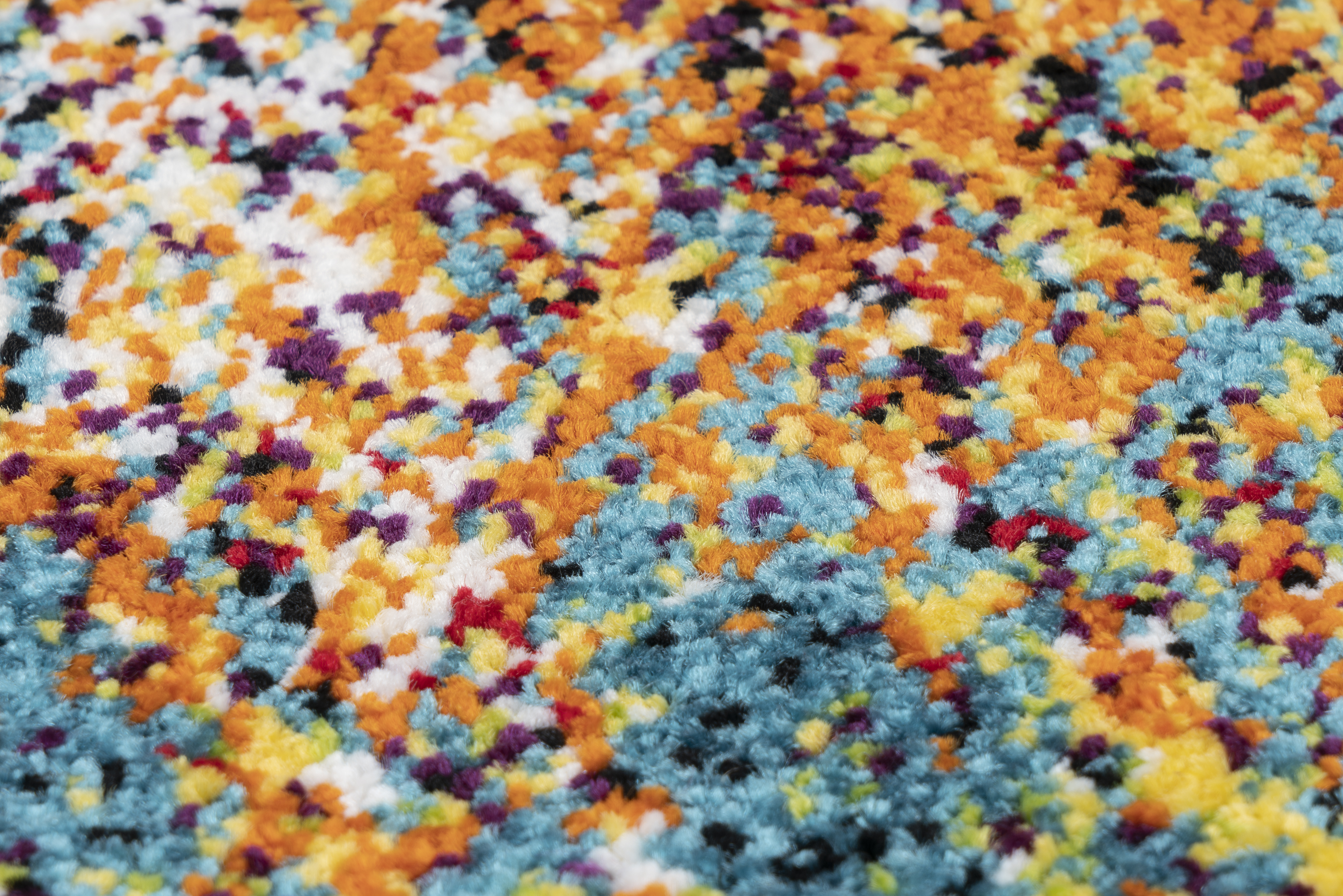 Ein kunstvolles Teppichwunder, das auf den Boden gehört, erschaffen durch die Hand einer wahren Koryphäe seines Gebietes. Ein gewaltiges Farbspektrum in einer Explosion an Kreativität. Dieser ausgefallene Designer-Teppich erfreut mit einer außerordentlich ausgewählten Farbkomposition. Ein farbenfrohes Kunstwerk das 100%ige Aufmerksamkeit verdient und auch erhält. Der elegante "Graphic-Carpet" zeichnet sich durch seine besondere Ausstrahlung aus. Der designstarke Teppich steckt voller Esprit und verlockt zu Inspiration. Die energiegeladenen Farben regen neue Impulse an. Die brillant leuchtenden Farben erzeugen ein designorientiertes Ambiente. So harmoniert er mit jeder modernen, wie auch klassischen Einrichtung. Der dichte Flor schützt die Farben vor Ausblassung. Durch die strapazierfähige Kunstfaser werden Sie lange Freude an diesem Teppich-Kunstwerk haben. Dabei steht der Komfort stets im Vordergrund. Dieser trendige Teppich mit seinen warmen Farben wird schnell zu einem Blickfang in jedem Raum. Mit abwaschbarer Kunstfaser und seitlich gekettelt, eignet er sich zudem für beheizte Fußböden.