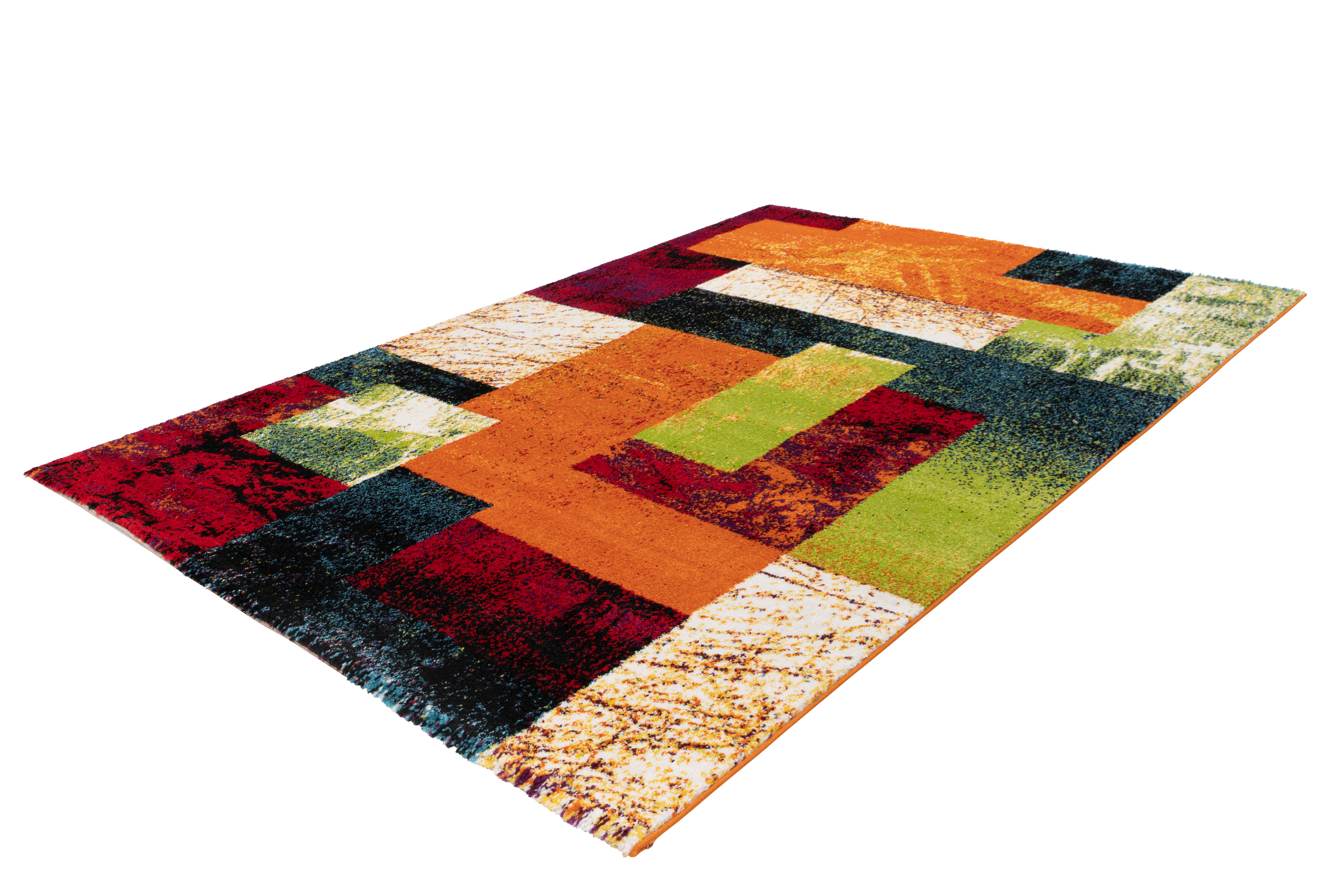 Ein kunstvolles Teppichwunder, das auf den Boden gehört, erschaffen durch die Hand einer wahren Koryphäe seines Gebietes. Ein gewaltiges Farbspektrum in einer Explosion an Kreativität. Dieser ausgefallene Designer-Teppich erfreut mit einer außerordentlich ausgewählten Farbkomposition. Ein farbenfrohes Kunstwerk das 100%ige Aufmerksamkeit verdient und auch erhält. Der elegante "Graphic-Carpet" zeichnet sich durch seine besondere Ausstrahlung aus. Der designstarke Teppich steckt voller Esprit und verlockt zu Inspiration. Die energiegeladenen Farben regen neue Impulse an. Die brillant leuchtenden Farben erzeugen ein designorientiertes Ambiente. So harmoniert er mit jeder modernen, wie auch klassischen Einrichtung. Der dichte Flor schützt die Farben vor Ausblassung. Durch die strapazierfähige Kunstfaser werden Sie lange Freude an diesem Teppich-Kunstwerk haben. Dabei steht der Komfort stets im Vordergrund. Dieser trendige Teppich mit seinen warmen Farben wird schnell zu einem Blickfang in jedem Raum. Mit abwaschbarer Kunstfaser und seitlich gekettelt, eignet er sich zudem für beheizte Fußböden.