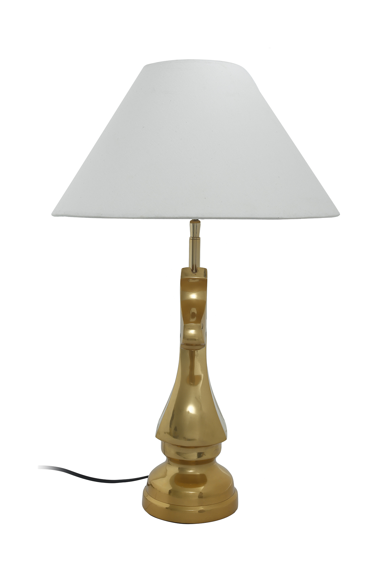 | Besonderheiten: | Tischlampe mit dekorativem Schah-Pferd-Sockel aus Metall, mit Stoffschirm |