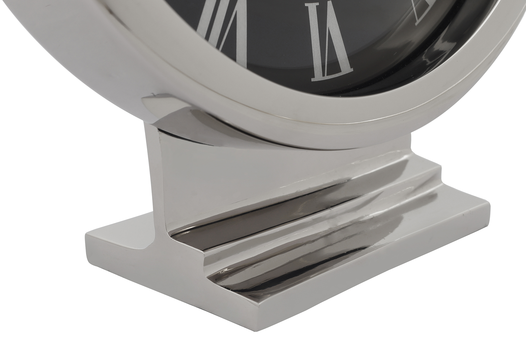 | Besonderheiten: | Dekorative Tischuhr mit Metallrahmen, römisches Zifferblatt, runde Form |