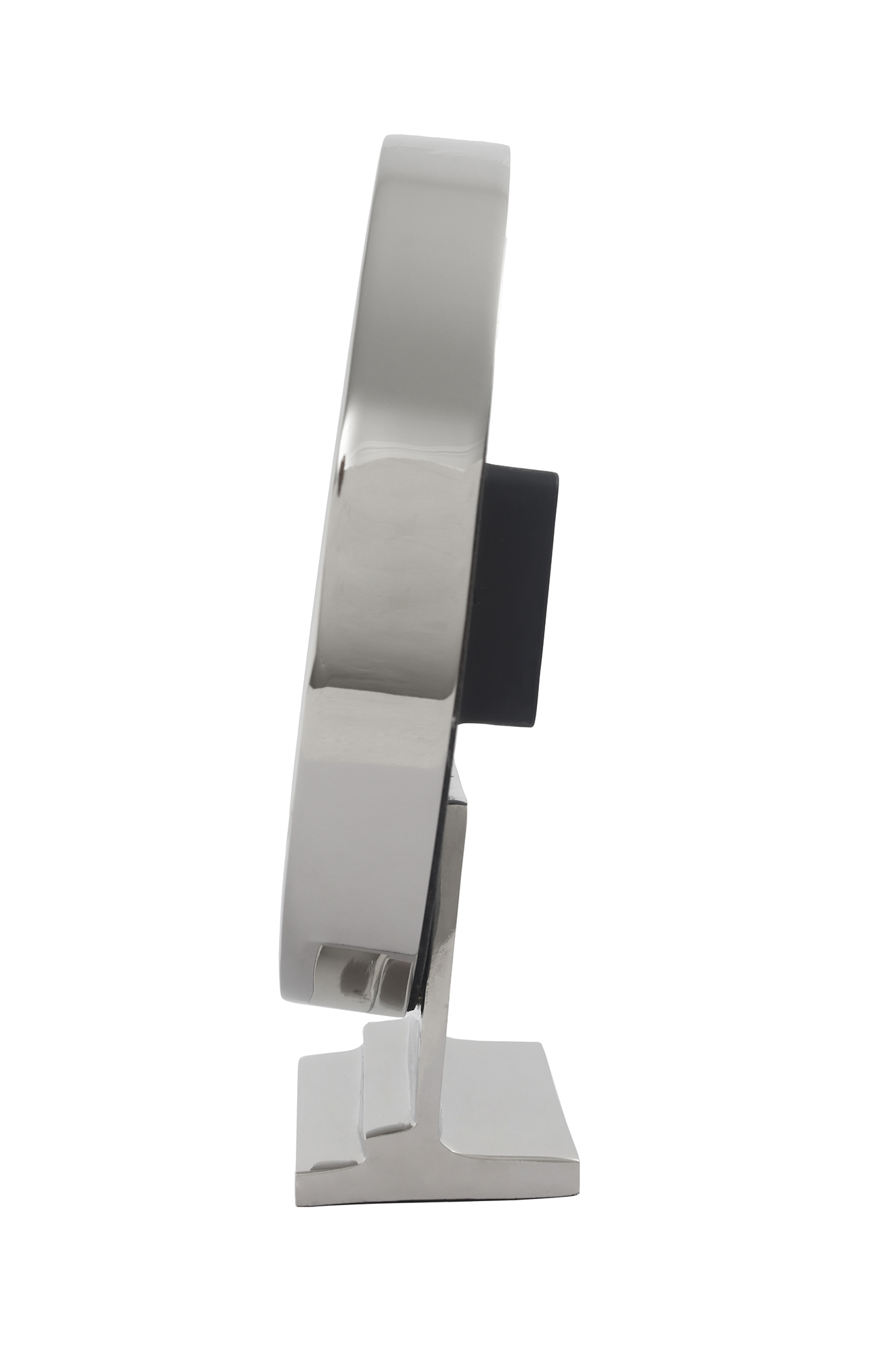 Diese formschöne Tischuhr beweist, dass Uhren längst nicht mehr nur dazu da sind, die Zeit anzuzeigen. Stattdessen ist die dekorative Uhr gleichermaßen praktisch wie schön und stellt dies stilsicher auf dem Esstisch, Nachtschränkchen oder Fensterbrett zur Schau. Die klassische runde Form erhält durch das schwarze, markante Ziffernblatt mit römischen Zahlen einen eleganten Look, den der glänzende Metallrahmen harmonisch abrundet. Als absoluter Hingucker verleiht die dekorative Tischuhr Küchen, Wohn- oder Schlafzimmern den letzten modischen Schliff und lässt sie mit der Zeit gehen. Spezifikationen: • Farbe: Silber / Gold • Material: 70% Aluminium, 30% Stahl • Größe: 20cm (L/T) x 6cm (B) x 24cm (H)