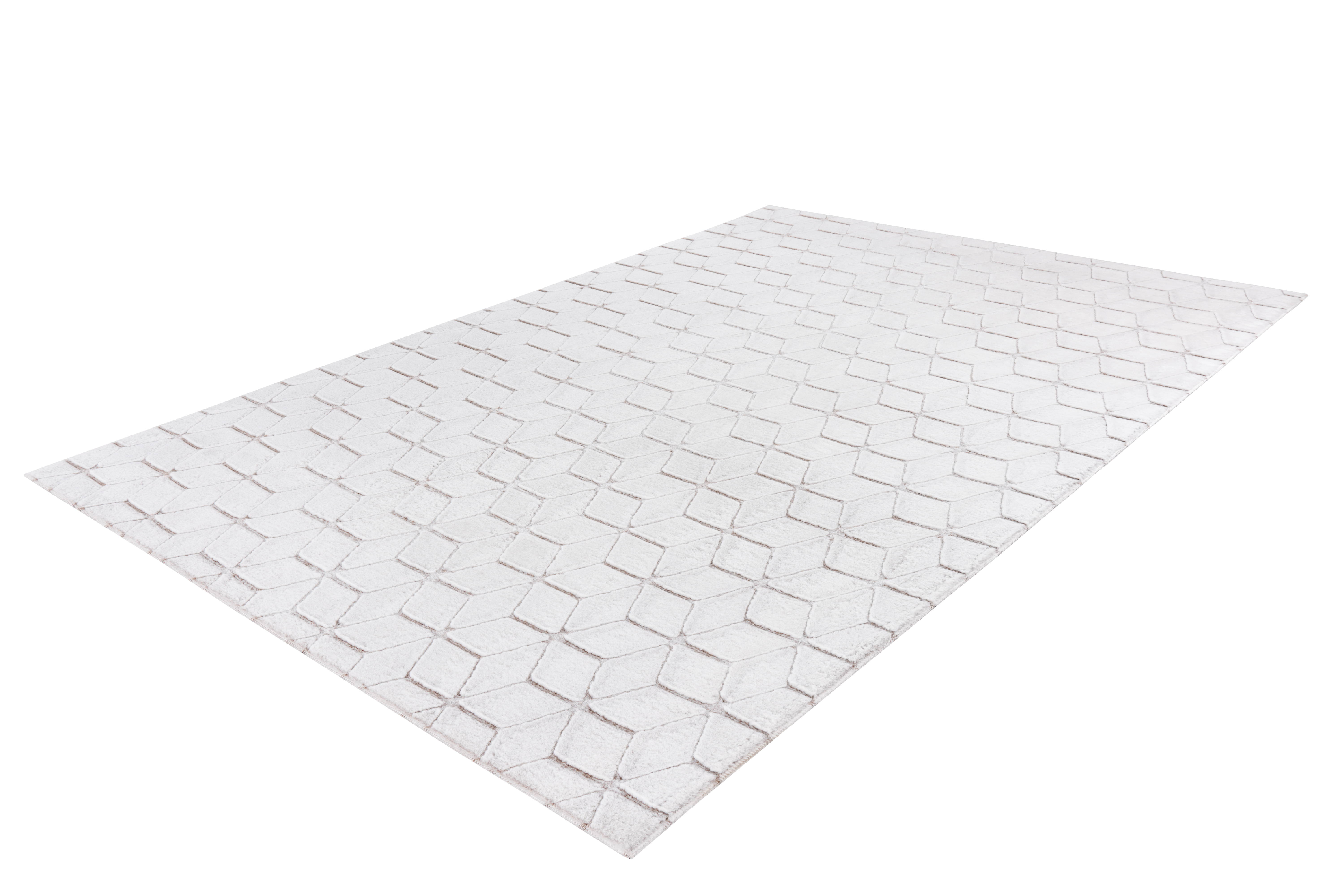 Der besondere Look dieses Hochflorteppichs zeichnet sich durch das attraktive geprägte Muster aus, das für einen attraktiven 3D-Effekt sorgt. Durch die geometrischen Formen des Musters erhält der Teppich zudem einen stilvollen Retro-Charakter. Der ansonsten schlichte und einfarbige Flor kann sich in jedem Wohnraum sehen lassen und lässt sich dank der schlichten Eleganz mit jeder Einrichtung kombinieren. Die kuschelige Oberfläche sorgt für eine gemütliche Atmosphäre im Raum. In Räumen mit Fußbodenheizung kann der Teppich ebenso problemlos ausgelegt werden. Durch einen Rücken aus Baumwolle und die Ziernaht rundherum wird der Teppichflor verstärkt. Gleichzeitig wird ein Ausfransen des Teppichs durch die Kettelung verhindert. Der Teppich kann in seiner tatsächlichen Farbgebung sowie im Muster von den Bildern abweichen. Der Teppich kann in seiner tatsächlichen Farbgebung abweichen. Durch unterschiedlichen Lichteinfall und verschiedene Streichrichtungen des Flors können unterschiedliche Farbnuancen entstehen.