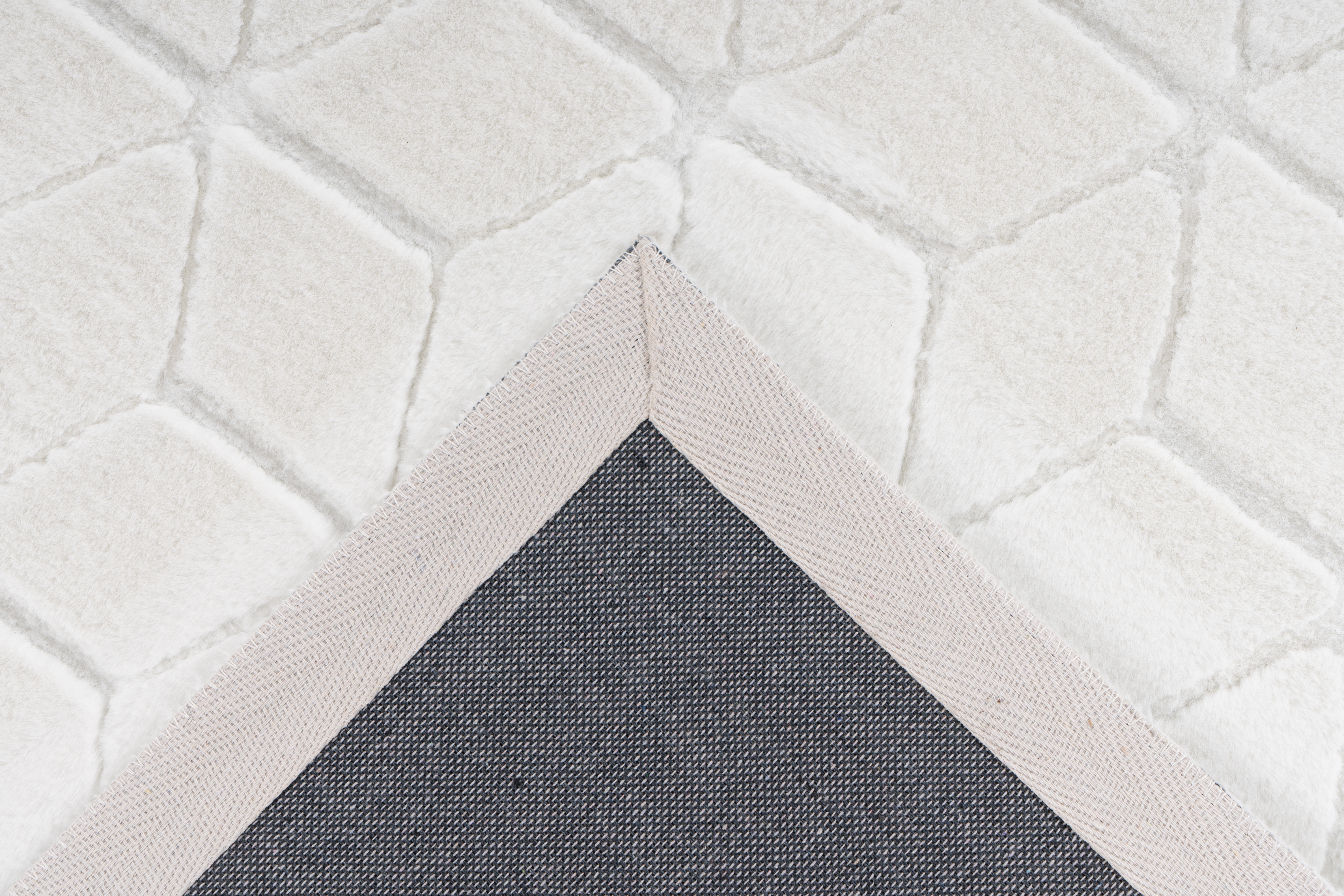 Der besondere Look dieses Hochflorteppichs zeichnet sich durch das attraktive geprägte Muster aus, das für einen attraktiven 3D-Effekt sorgt. Durch die geometrischen Formen des Musters erhält der Teppich zudem einen stilvollen Retro-Charakter. Der ansonsten schlichte und einfarbige Flor kann sich in jedem Wohnraum sehen lassen und lässt sich dank der schlichten Eleganz mit jeder Einrichtung kombinieren. Die kuschelige Oberfläche sorgt für eine gemütliche Atmosphäre im Raum. In Räumen mit Fußbodenheizung kann der Teppich ebenso problemlos ausgelegt werden. Durch einen Rücken aus Baumwolle und die Ziernaht rundherum wird der Teppichflor verstärkt. Gleichzeitig wird ein Ausfransen des Teppichs durch die Kettelung verhindert. Der Teppich kann in seiner tatsächlichen Farbgebung sowie im Muster von den Bildern abweichen. Durch unterschiedlichen Lichteinfall und verschiedene Streichrichtungen des Flors können unterschiedliche Farbnuancen entstehen.