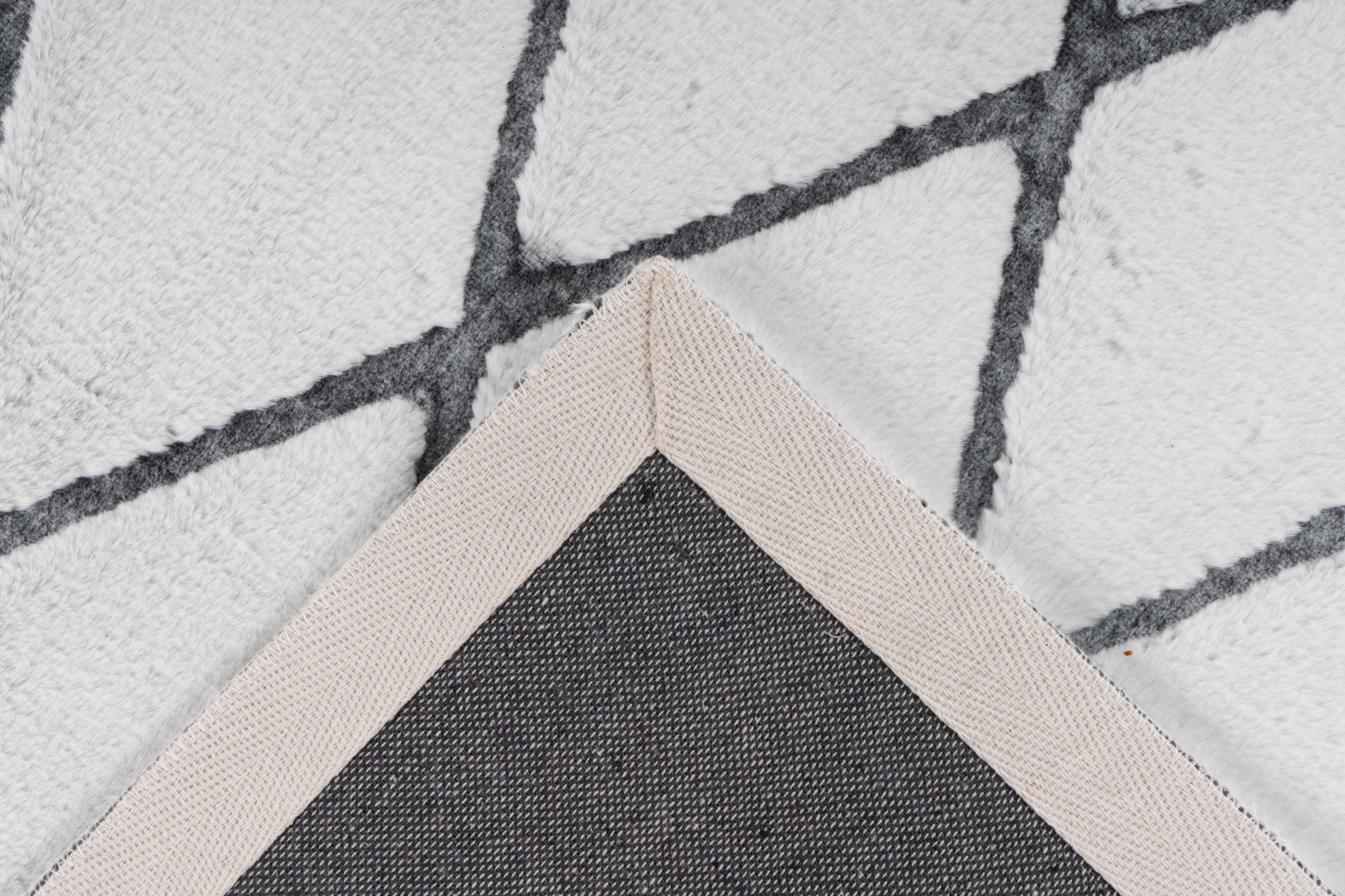 Der besondere Look dieses Hochflorteppichs zeichnet sich durch das attraktive geprägte Muster aus, das für einen attraktiven 3D-Effekt sorgt. Durch die geometrischen Formen des Musters erhält der Teppich zudem einen stilvollen Retro-Charakter. Der ansonsten schlichte und einfarbige Flor kann sich in jedem Wohnraum sehen lassen und lässt sich dank der schlichten Eleganz mit jeder Einrichtung kombinieren. Die kuschelige Oberfläche sorgt für eine gemütliche Atmosphäre im Raum. In Räumen mit Fußbodenheizung kann der Teppich ebenso problemlos ausgelegt werden. Durch einen Rücken aus Baumwolle und die Ziernaht rundherum wird der Teppichflor verstärkt. Gleichzeitig wird ein Ausfransen des Teppichs durch die Kettelung verhindert. Der Teppich kann in seiner tatsächlichen Farbgebung sowie im Muster von den Bildern abweichen. Durch unterschiedlichen Lichteinfall und verschiedene Streichrichtungen des Flors können unterschiedliche Farbnuancen entstehen.
