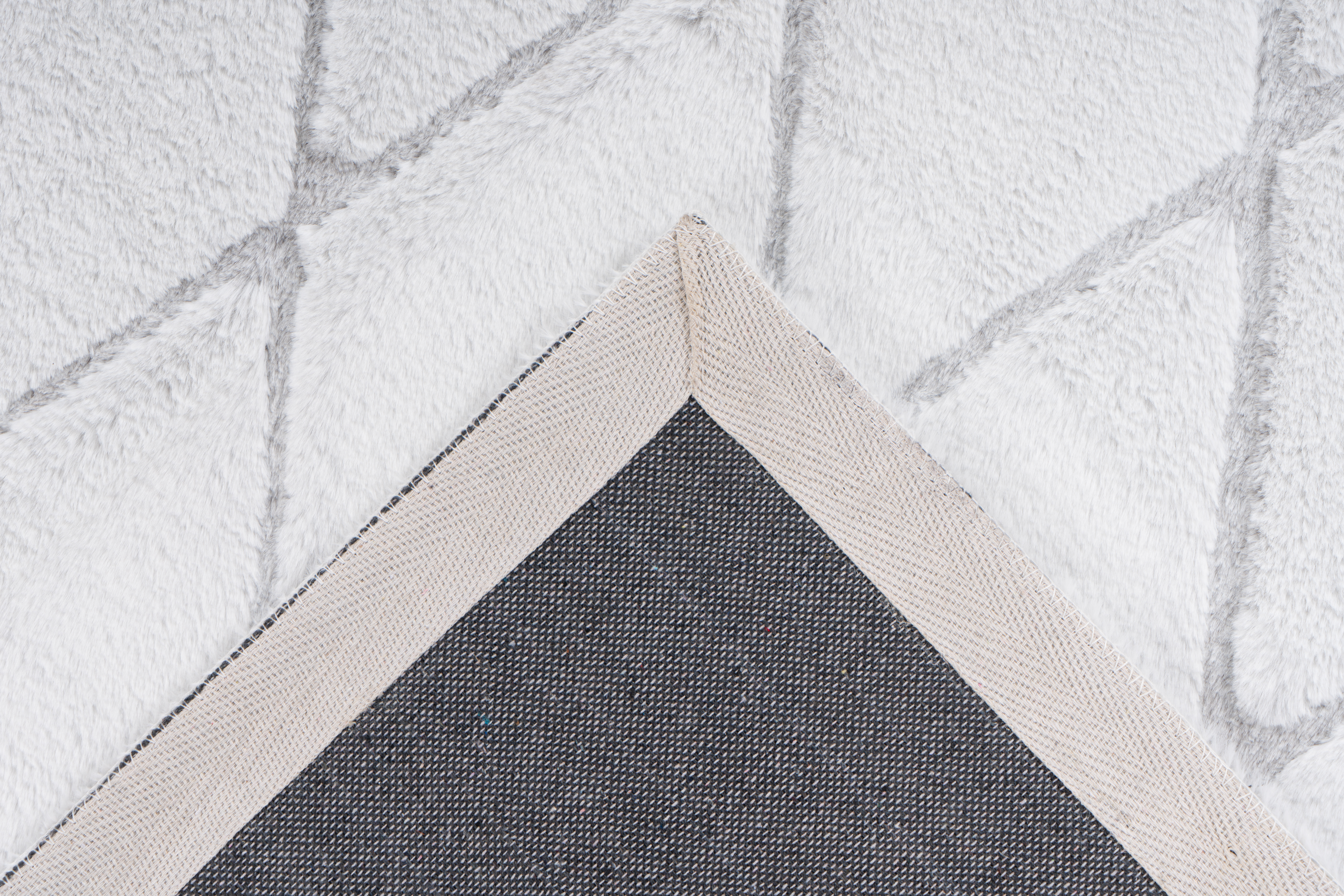 Der besondere Look dieses Hochflorteppichs zeichnet sich durch das attraktive geprägte Muster aus, das für einen attraktiven 3D-Effekt sorgt. Durch die geometrischen Formen des Musters erhält der Teppich zudem einen stilvollen Retro-Charakter. Der ansonsten schlichte und einfarbige Flor kann sich in jedem Wohnraum sehen lassen und lässt sich dank der schlichten Eleganz mit jeder Einrichtung kombinieren. Die kuschelige Oberfläche sorgt für eine gemütliche Atmosphäre im Raum. In Räumen mit Fußbodenheizung kann der Teppich ebenso problemlos ausgelegt werden. Durch einen Rücken aus Baumwolle und die Ziernaht rundherum wird der Teppichflor verstärkt. Gleichzeitig wird ein Ausfransen des Teppichs durch die Kettelung verhindert. Der Teppich kann in seiner tatsächlichen Farbgebung sowie im Muster von den Bildern abweichen. Der Teppich kann in seiner tatsächlichen Farbgebung abweichen. Durch unterschiedlichen Lichteinfall und verschiedene Streichrichtungen des Flors können unterschiedliche Farbnuancen entstehen.