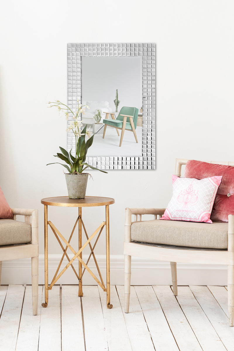 Dieser Spiegel bringt gehobene Eleganz in Ihre Räumlichkeiten. Die klassische rechteckige Form betont durch das stilvolle, aufwendige Design den reizvollen Charakter des Wohnaccessoires. Der zeitlose Spiegel eignet sich ideal für die Anbringung im Wohnzimmer, Flur, Badezimmer oder jedem weiteren Raum. Kleine Räume profitieren von Spiegelflächen an der Wand, da sie diese größer erscheinen lassen. Mit einer Größe von ca. 90 x 60 cm macht der rechteckige Spiegel besonders an freien Wänden etwas her und sorgt für schöne Spiegelungen. Auch als Geschenk für Freunde und Familie, egal ob zum Geburtstag, zur Einweihung oder für sich selbst, eignet sich der rechteckige Wandspiegel ideal. Egal ob als auflockernde Dekoration oder als stylischer Hingucker – der rechteckige Spiegel glänzt prachtvoll und erhellt jeden Raum. Vereinen Sie den Deko-Zweck und den praktischen Nutzen des Deko-Spiegels miteinander und bringen Sie ihn hochkant oder quer an einer Wand in Ihrem Zuhause an. Er fügt sich dank der leichten Anbringung ideal in unterschiedlichste Wohnkonzepte ein. Kayoom ist bekannt für Designprodukte in stilvoller und eleganter Aufmachung für eine moderne Inneneinrichtung. Überzeugen Sie sich von uns und unseren Produkten. Your spot. Your home!