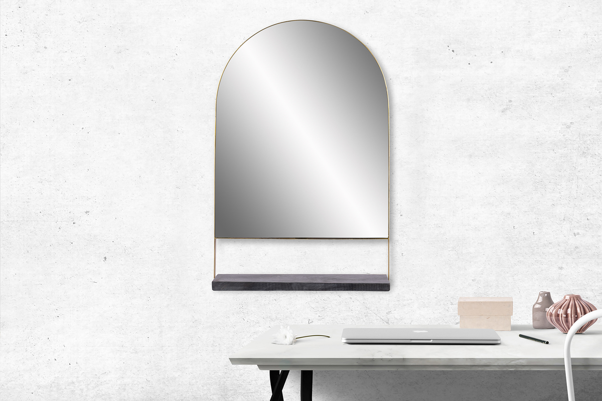 Dieser Wandspiegel bereichert Ihre Räumlichkeiten aus optischer und praktischer Sicht. Denn mit der stilsicheren Form, welche an klassische Spiegel im orientalischen Design erinnert, sorgt er alleine schon als Blickfang. Darüber hinaus wird er mit einem feinen Metallrahmen veredelt, welcher dem Modell mehr Extravaganz verleiht. Praktisch wird der Wandspiegel im modernen Design wiederum durch die Marmorablage. Auf dieser können Sie Alltagsgegenstände bequem ablegen. Genauso lässt sich diese für das Erzielen von noch mehr dekorativen Highlights nutzen. So können Sie Lichtelemente oder Dekorationsobjekte einfach aufstellen. Besonders edle Akzente erzielen Sie mit schicken Teelichtern oder gar ein paar Sukkulenten. So zeichnet sich der Wandspiegel mit orientalischem Touch durch seine flexiblen Gestaltungsmöglichkeiten aus, wobei er ebenso in jedem Raum Platz findet. Bei dem Wandspiegel mit Ablagefläche aus Marmor handelt es sich um ein Produkt aus Handarbeit. Aus diesem Grund können leichte Unterschiede zu der Abbildung auftreten.