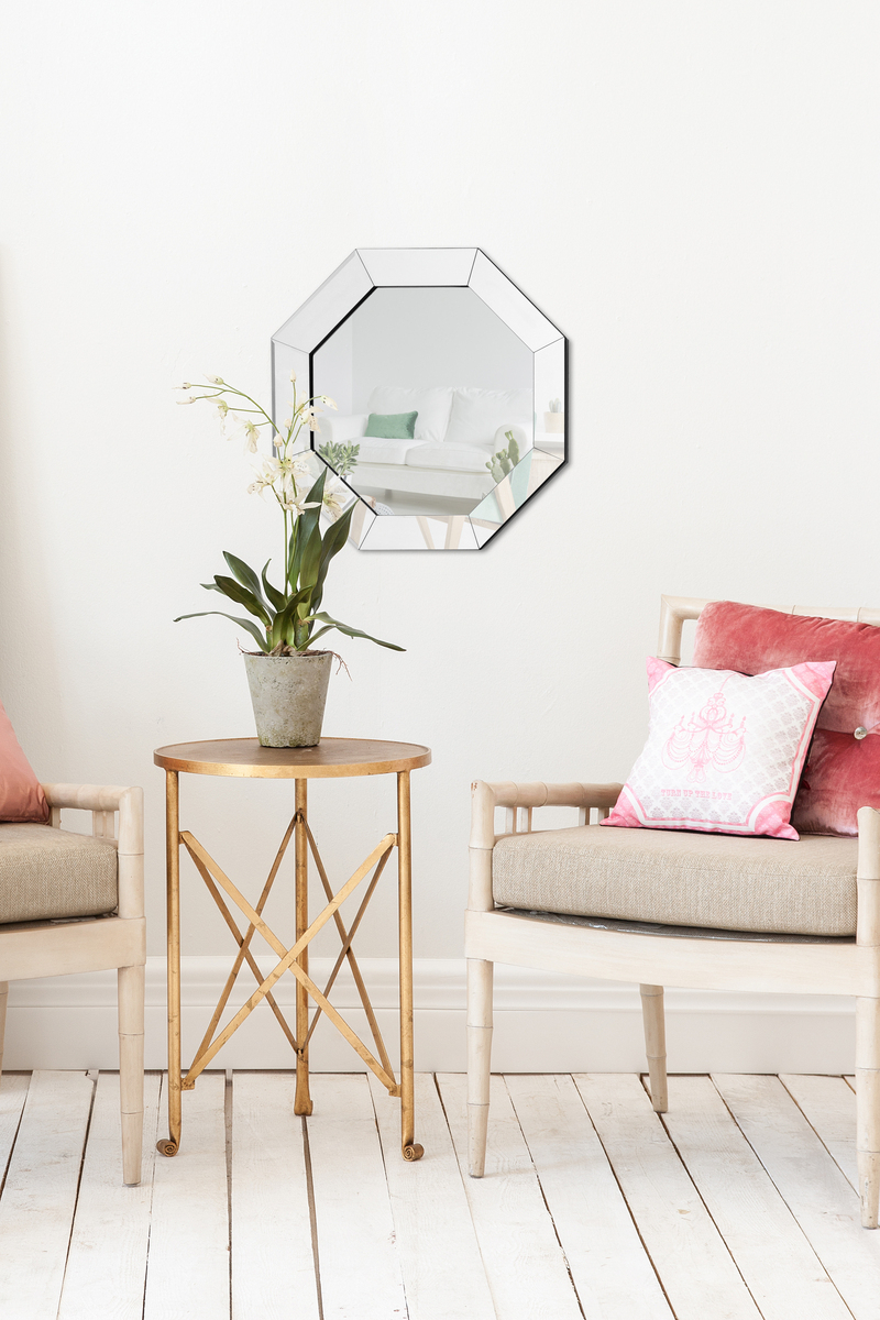 Dieser Spiegel bringt gehobene Eleganz in Ihre Räumlichkeiten. Die achteckige Oktagon-Form der Spiegelfläche harmonisiert mit dem kreativen Design des silbernen Rahmens und betont den reizvollen Charakter des Wohnaccessoires. Der zeitlose Spiegel eignet sich ideal für die Anbringung im Wohnzimmer, Flur, Badezimmer oder jedem weiteren Raum. Kleine Räume profitieren von Spiegelflächen an der Wand, da sie diese größer erscheinen lassen. Mit einem Durchmesser von ca. 80 cm macht der silberne Spiegel besonders an freien Wänden etwas her. Auch als Geschenk für Freunde und Familie, egal ob zum Geburtstag, zur Einweihung oder für sich selbst, eignet sich der Wandspiegel in Achteck-Form ideal. Egal ob als auflockernde Dekoration oder als stylischer Hingucker – der achteckige Spiegel mit Silberrahmen glänzt prachtvoll und erhellt jeden Raum. Die extravagante Kristall-Optik versprüht Charme und Eleganz. Vereinen Sie den Deko-Zweck und den praktischen Nutzen des Deko-Spiegels miteinander und bringen Sie ihn an einer Wand in Ihrem Zuhause an. Er fügt sich dank der leichten Anbringung ideal in unterschiedlichste Wohnkonzepte ein. Kayoom ist bekannt für Designprodukte in stilvoller und eleganter Aufmachung für eine moderne Inneneinrichtung. Überzeugen Sie sich von uns und unseren Produkten. Your spot. Your home!