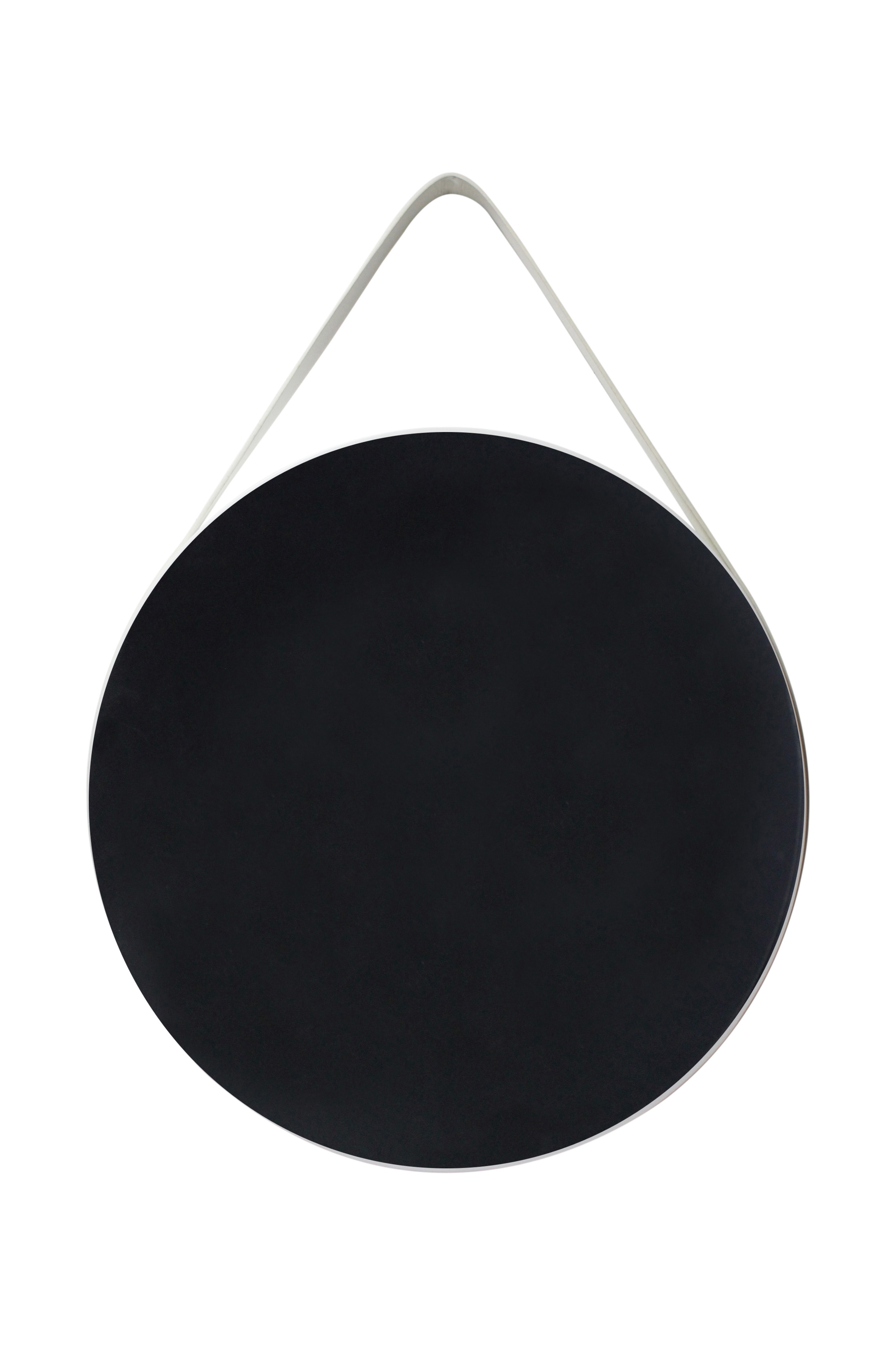 Bei diesem Spiegel erfolgt die Aufhängung an einem Gürtel aus Kunstleder. Der farblich passende Gürtel ist am äußeren Rahmen des Spiegels befestigt und macht den Spiegel durch die sichtbare und elegante Aufhängung zu einem besonderen Hingucker.