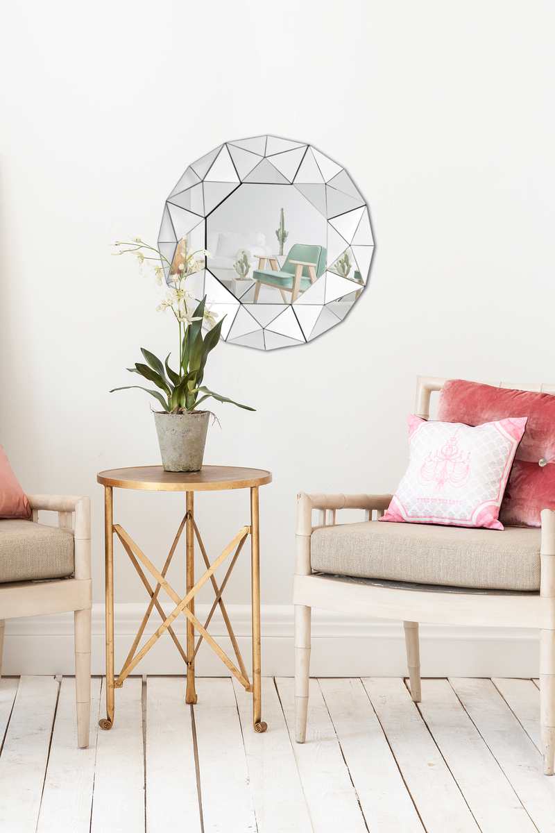 Dieser Spiegel bringt gehobene Eleganz in Ihre Räumlichkeiten. Die achteckige Oktagon-Form der Spiegelfläche harmonisiert mit dem kreativen Design des silbernen Rahmens und betont den reizvollen Charakter des Wohnaccessoires. Der zeitlose Spiegel eignet sich ideal für die Anbringung im Wohnzimmer, Flur, Badezimmer oder jedem weiteren Raum. Kleine Räume profitieren von Spiegelflächen an der Wand, da sie diese größer erscheinen lassen. Mit einem Durchmesser von ca. 80 cm macht der silberne Spiegel besonders an freien Wänden etwas her. Auch als Geschenk für Freunde und Familie, egal ob zum Geburtstag, zur Einweihung oder für sich selbst, eignet sich der Wandspiegel in Achteck-Form ideal. Egal ob als auflockernde Dekoration oder als stylischer Hingucker – der achteckige Spiegel mit Silberrahmen glänzt prachtvoll und erhellt jeden Raum. Die extravagante Kristall-Optik versprüht Charme und Eleganz. Vereinen Sie den Deko-Zweck und den praktischen Nutzen des Deko-Spiegels miteinander und bringen Sie ihn an einer Wand in Ihrem Zuhause an. Er fügt sich dank der leichten Anbringung ideal in unterschiedlichste Wohnkonzepte ein. Kayoom ist bekannt für Designprodukte in stilvoller und eleganter Aufmachung für eine moderne Inneneinrichtung. Überzeugen Sie sich von uns und unseren Produkten. Your spot. Your home!