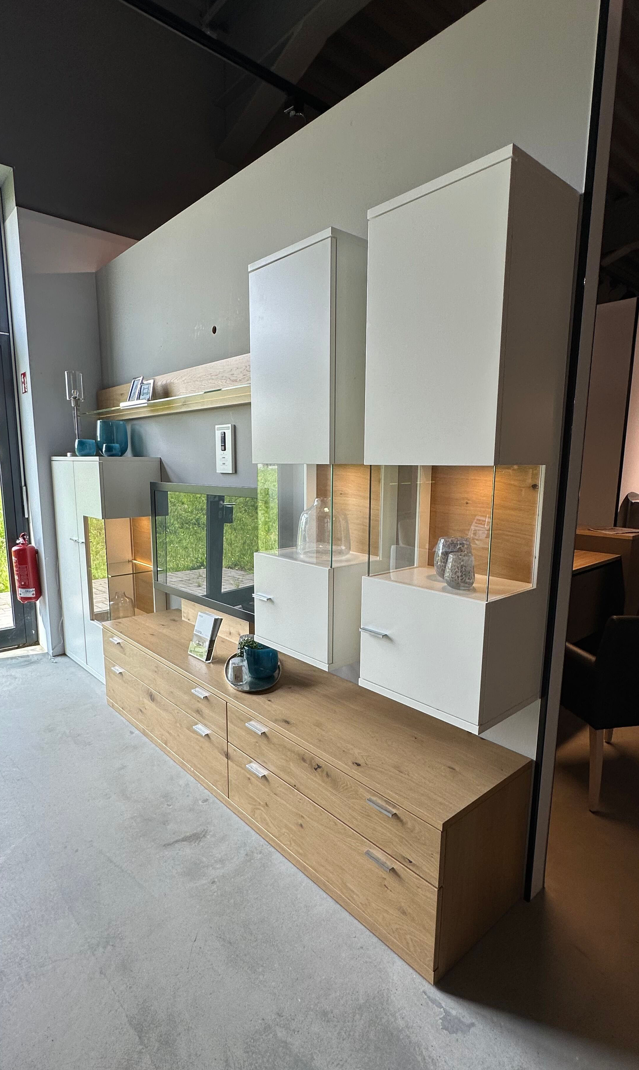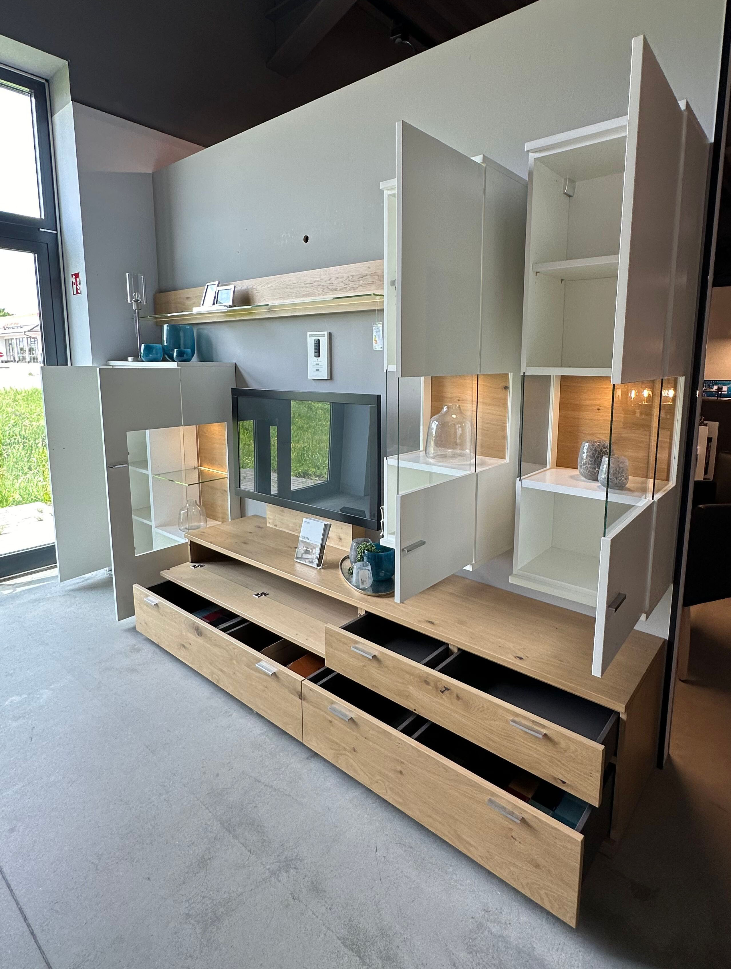 Ein besonderes Highlight der Lodano sind die eleganten Glasfronten. Diese verleihen der Wohnwand nicht nur eine moderne und hochwertige Optik, sondern setzen auch Ihre Lieblingsstücke stilvoll in Szene. Ob Porzellan, Sammlerstücke oder besondere Erinnerungsstücke – hinter den Glasfronten kommen sie perfekt zur Geltung.